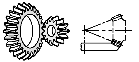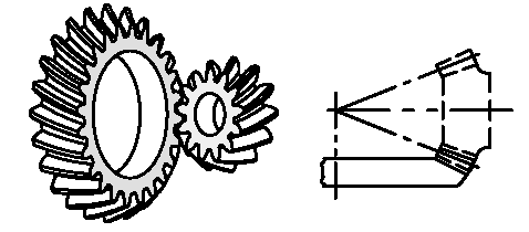零度錐齒輪(圖2)就是螺旋角為零度的弧齒錐齒輪,彎曲的輪齒向直齒錐齒輪一樣處于相同的方向上。和弧齒錐齒輪一樣,在軸承上產(chǎn)生相同的推力載荷,可以用于相同的安裝,具有平滑的運轉(zhuǎn)特性,可以在同一臺機床上制造。零度錐齒輪也可以進行齒面的精密加工。有時螺旋角小于10度的弧齒錐齒輪都稱為零度錐齒輪。