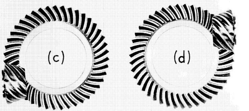 小輪的偏置可以指定在大輪軸線的上部或下部,小輪在右側(cè)時觀察齒輪副確定偏置的方向。在圖4中,(a)和(b)顯示了低于中心線的布置,(c)和(d)顯示了高于中心線的布置。