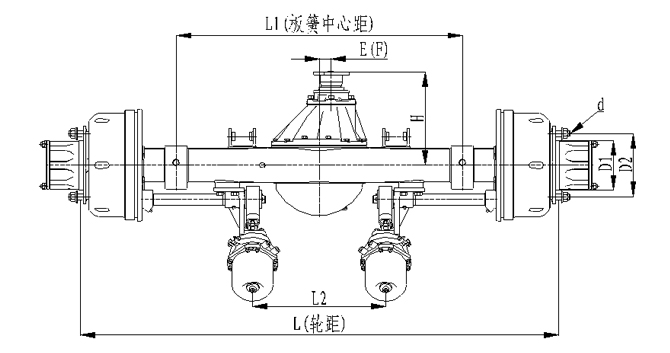 1.橋殼采取加強(qiáng)型設(shè)計(jì),承載能力強(qiáng);2.車輪輪輞定位方式可采用球面定位或止口定位;3.板簧距與輪距可以靈活調(diào)整