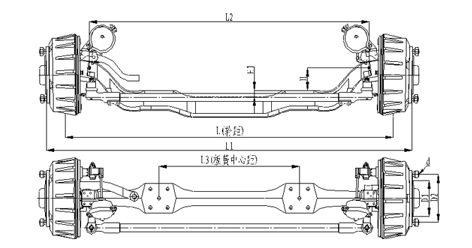 產品特點:1.前軸為整體鍛造結構,采用加強設計,承載能力強; 2.輪距、板簧距可靈活調整;3.車輪輪輞定位方式可采用球面定位或止口定位