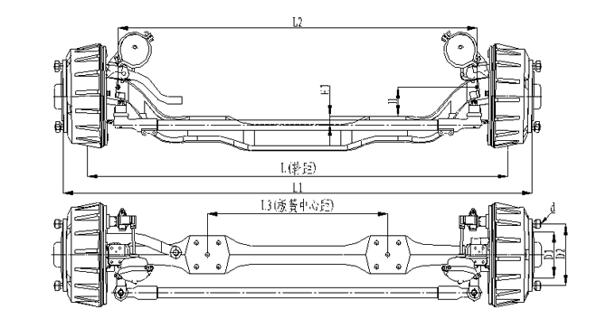 產品特點:1.前軸為整體鍛造結構,采用加強設計,承載能力強; 2.輪距、板簧距可靈活調整;3.車輪輪輞定位方式可采用球面定位或止口定位