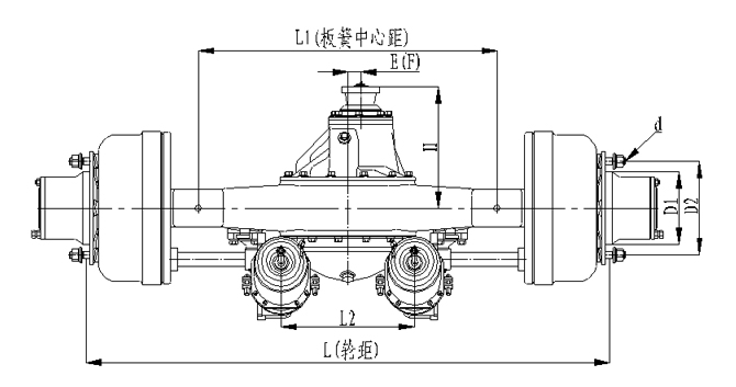 產品特點:1.橋殼加強型設計,承載能力強;2.車輪輪輞定位方式可采用球面定位或止口定位;3.板簧距與輪距可以調整